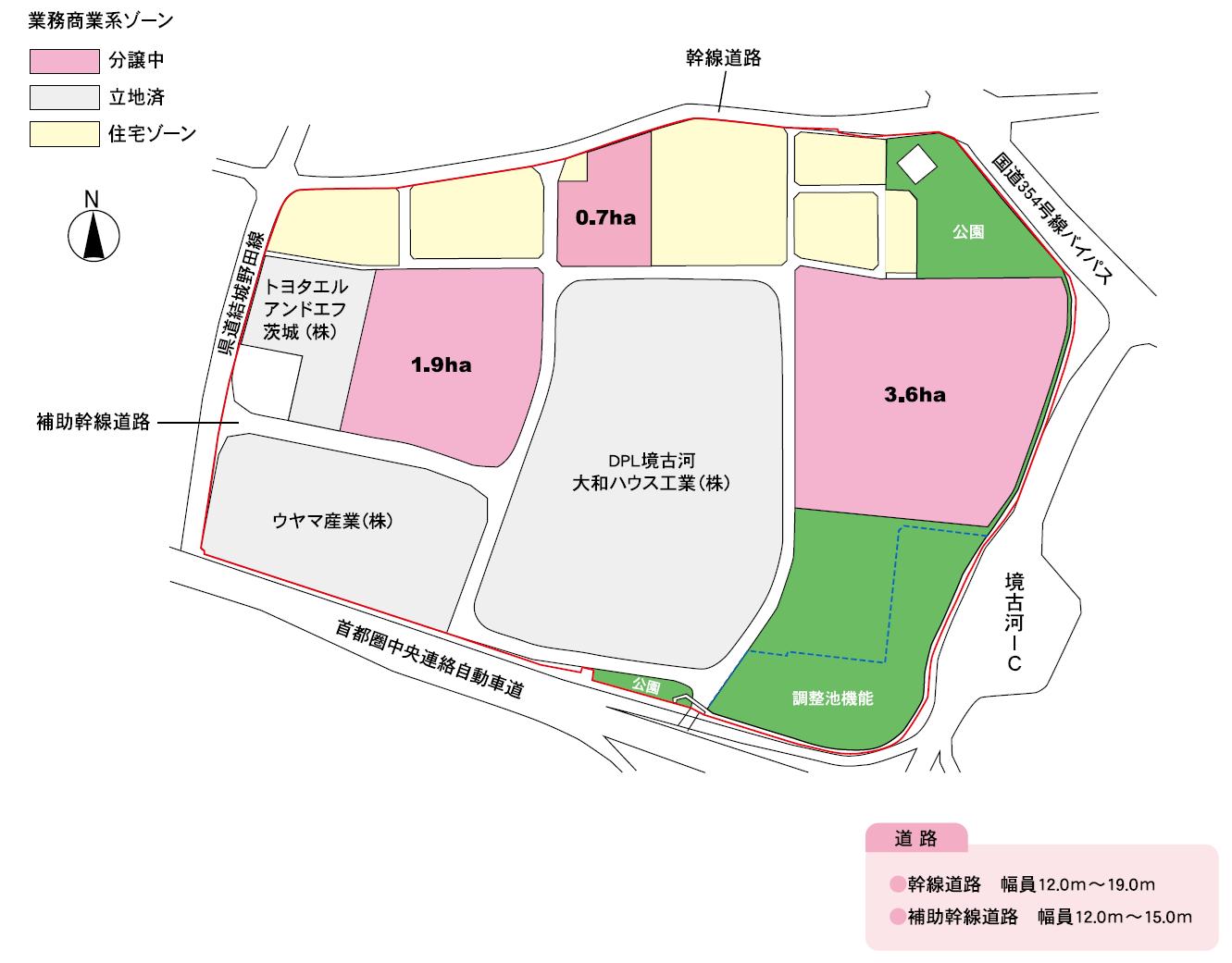 | 用地面積 | 開発面積 約24.6ha 分譲中面積 約6.2ha |