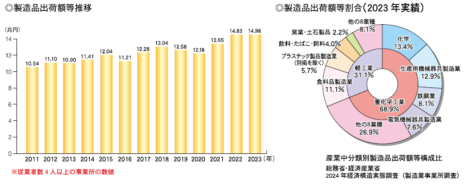 製造品出荷額等約15兆円で全国第8位。